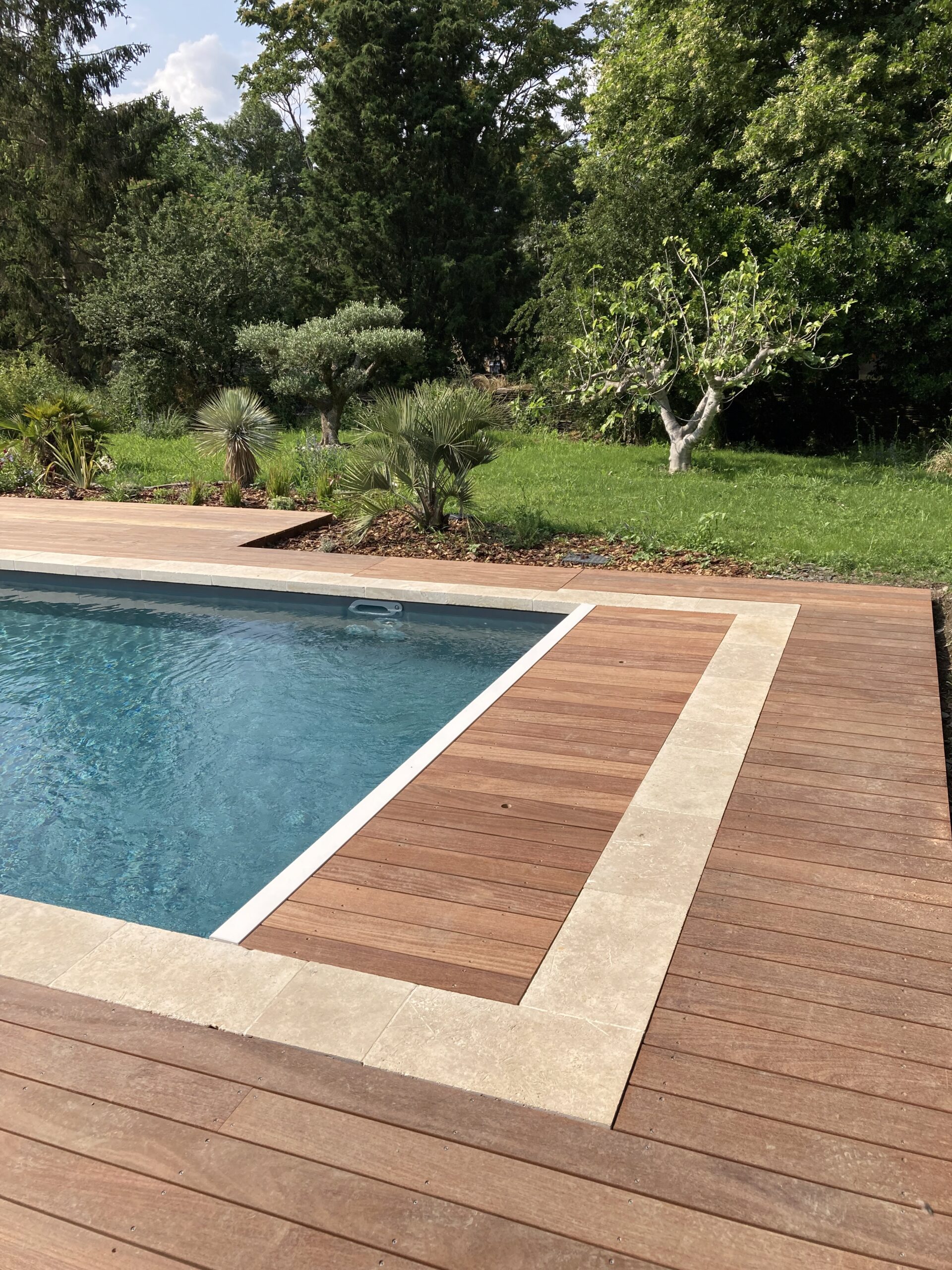 Nous avons récemment réalisé une terrasse de piscine haut de gamme en bois exotique, alliant esthétique, robustesse et durabilité. Cette réalisation met en valeur toute notre expertise artisanale et notre exigence en matière de qualité des matériaux.
